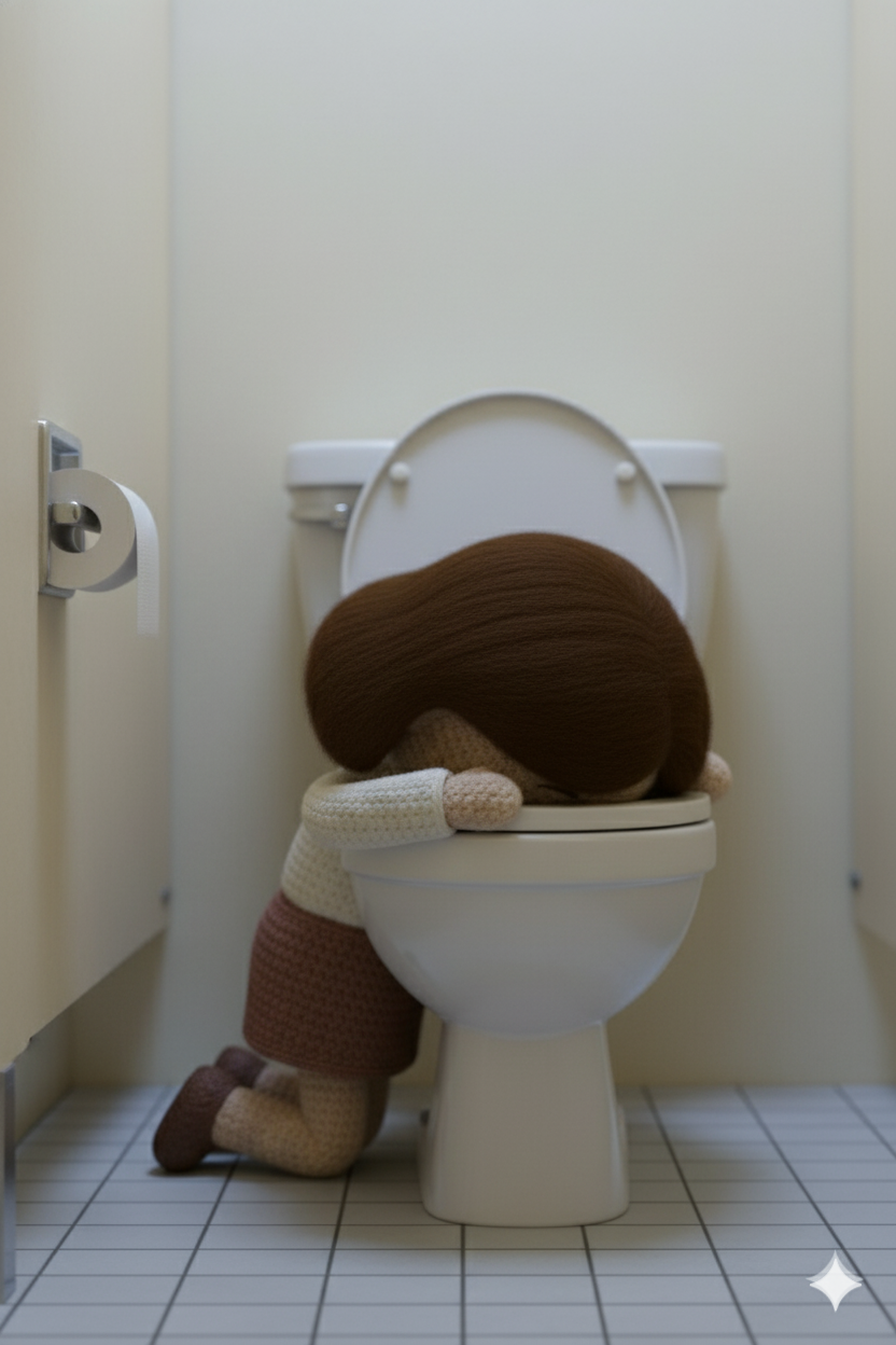 Like props, there was a blend of crochet and real-world. For most settings, I had to build them separately from the characters then place them with Nanobanana.